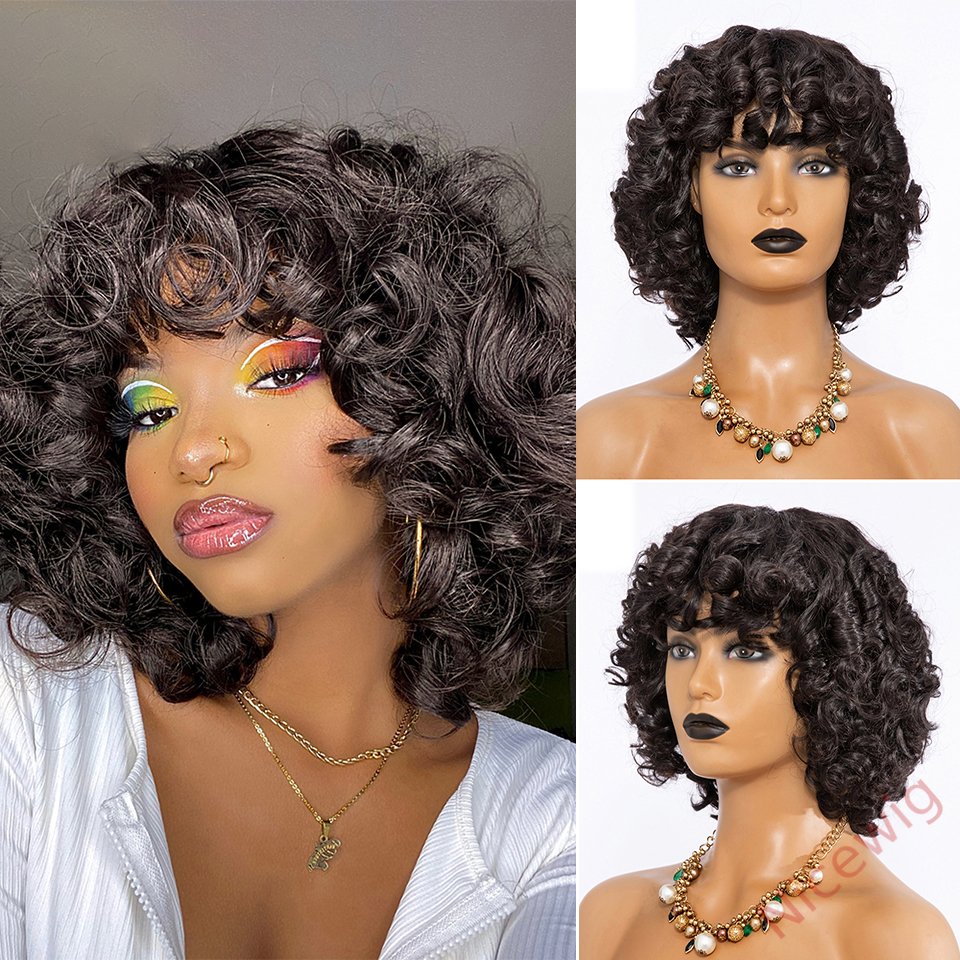 Kinky Curly Wigs With Bangs Fluffy African Ombre Glueless Wigs
