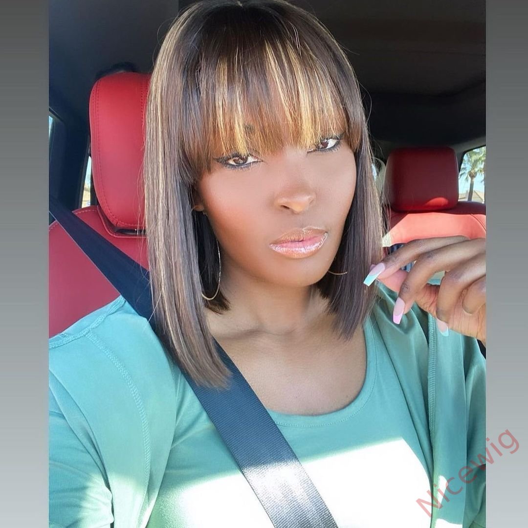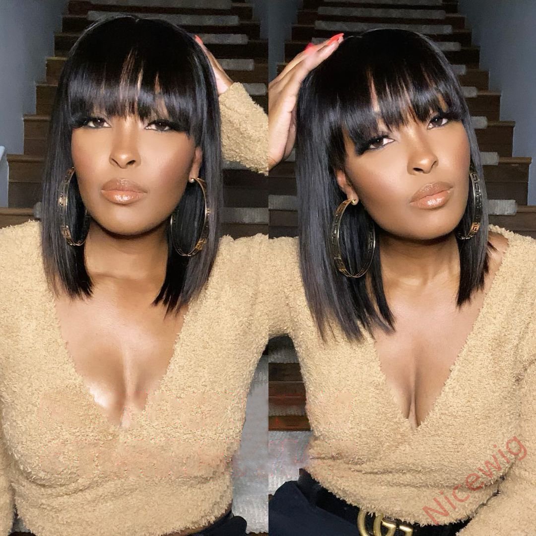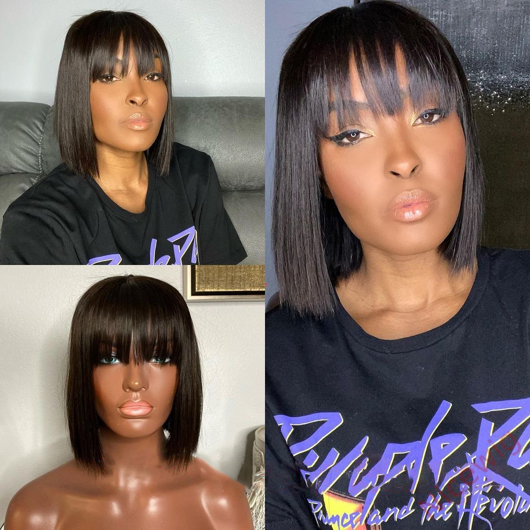 Glueless Short Bob Wig With Bangs Straight Brazilian Hair Wigs