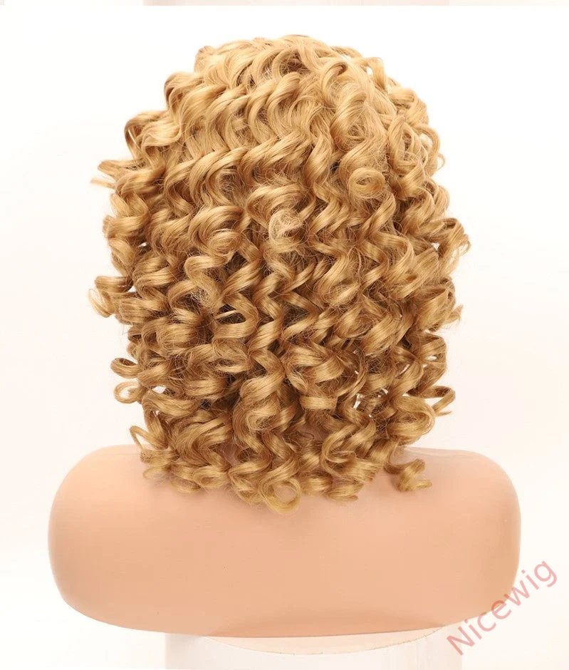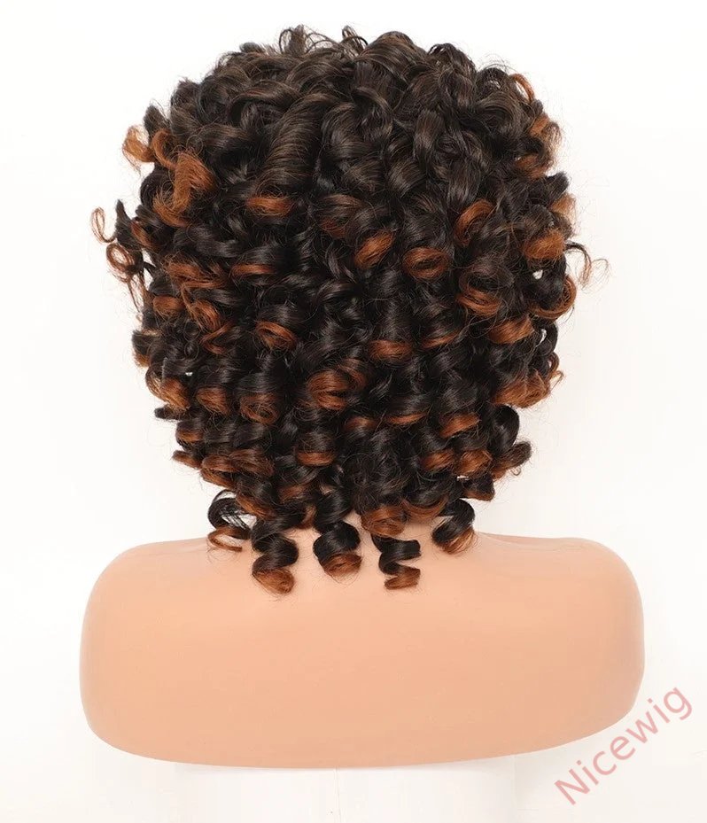 Kinky Curly Wigs With Bangs Fluffy African Ombre Glueless Wigs