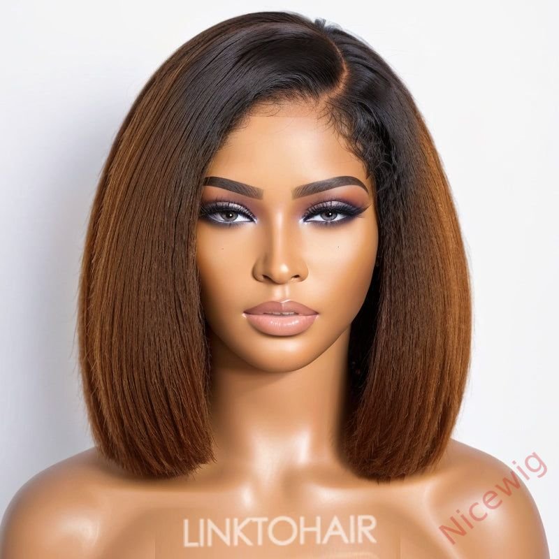 Glueless Lovely Natrual Bob Styles Silky Yaki Hair Wig