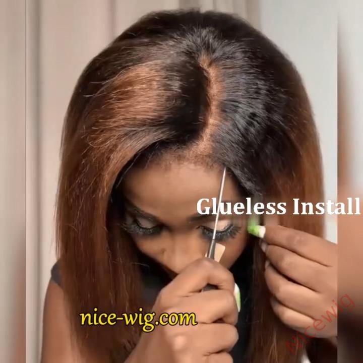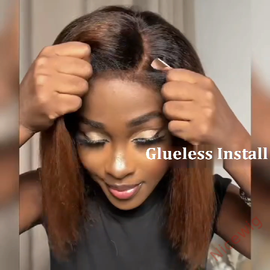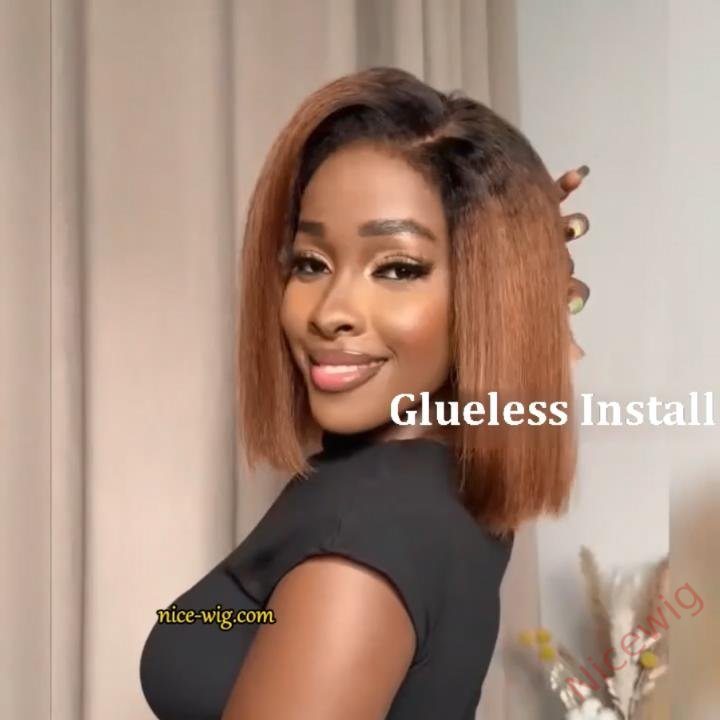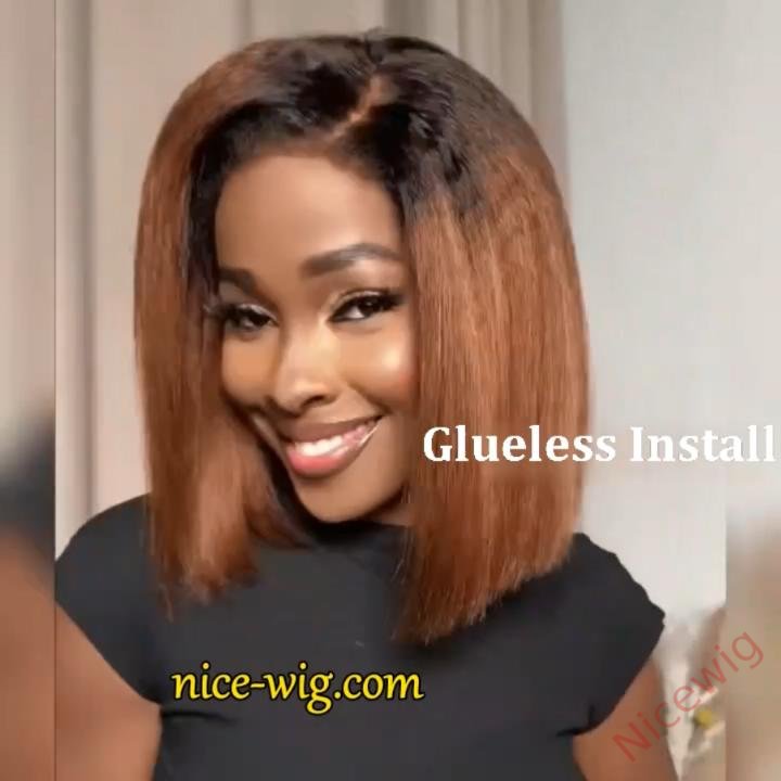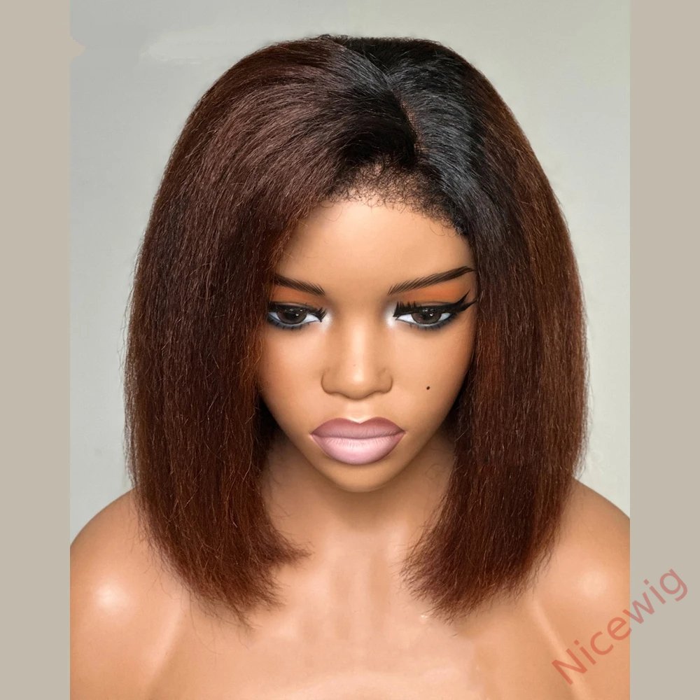 Glueless Lovely Black Gradient Light Brown Natrual Bob Styles Silky Yaki Hair Wig