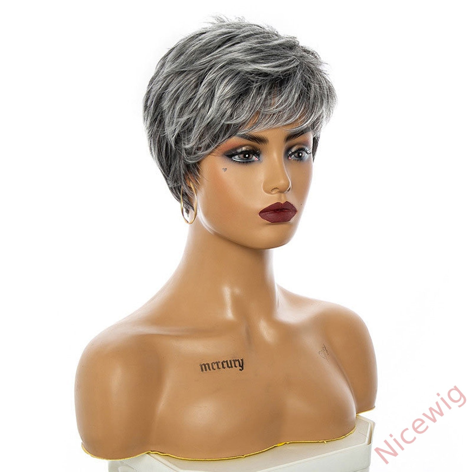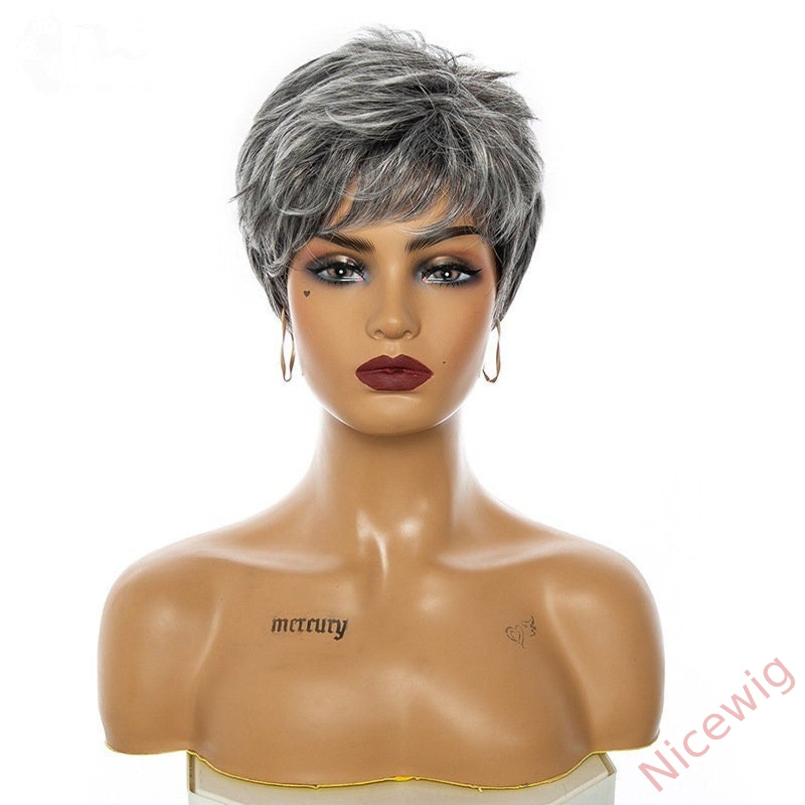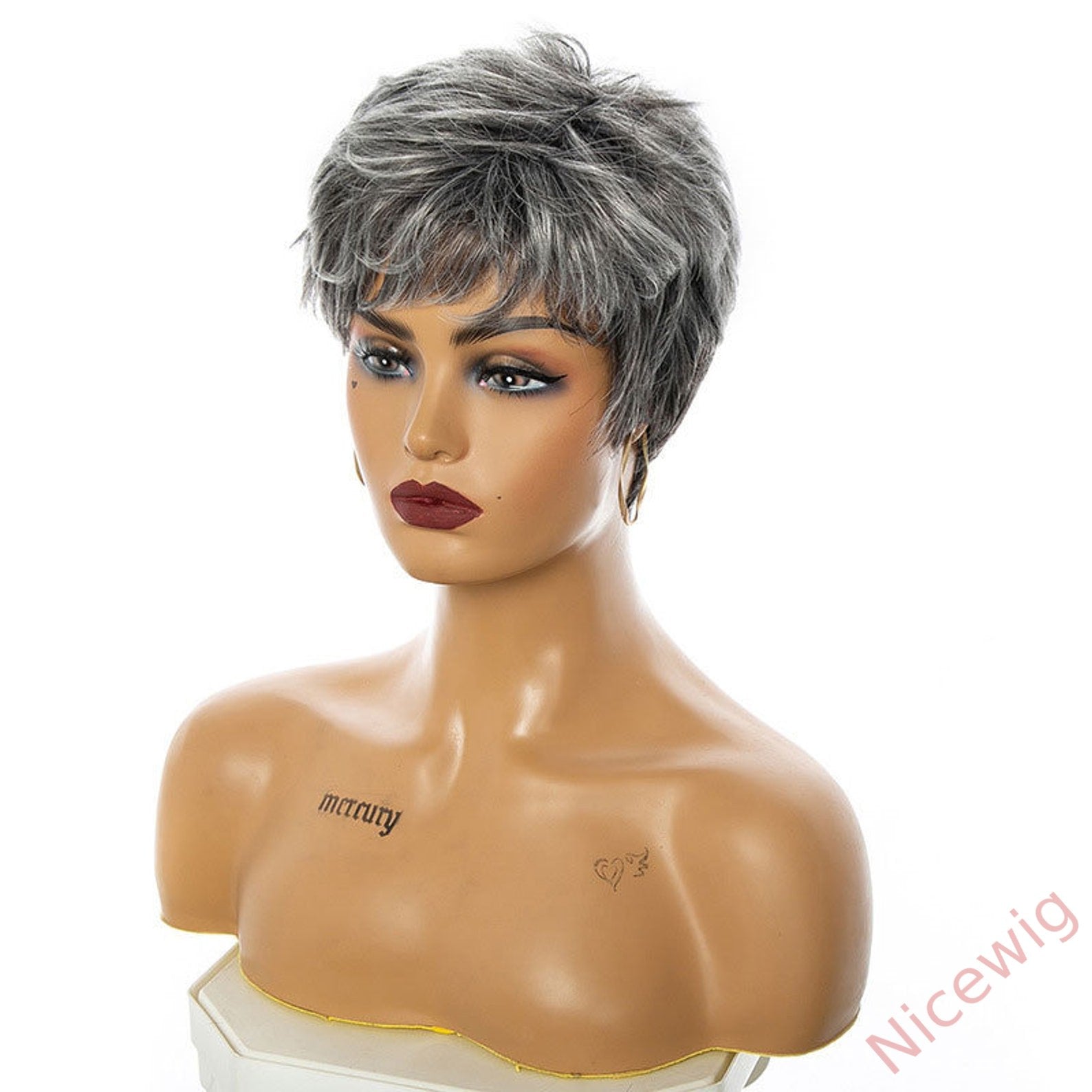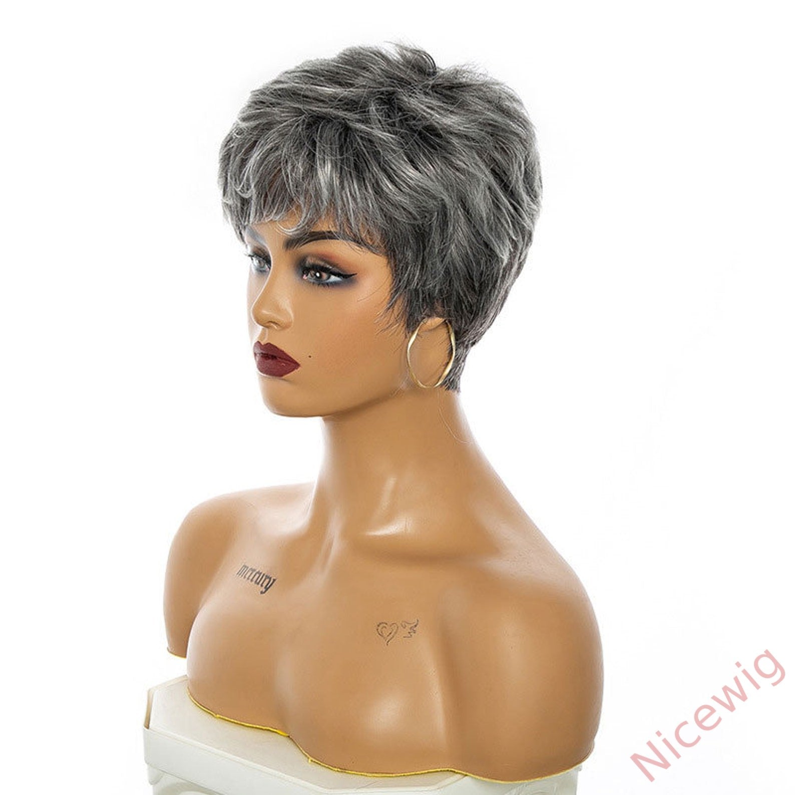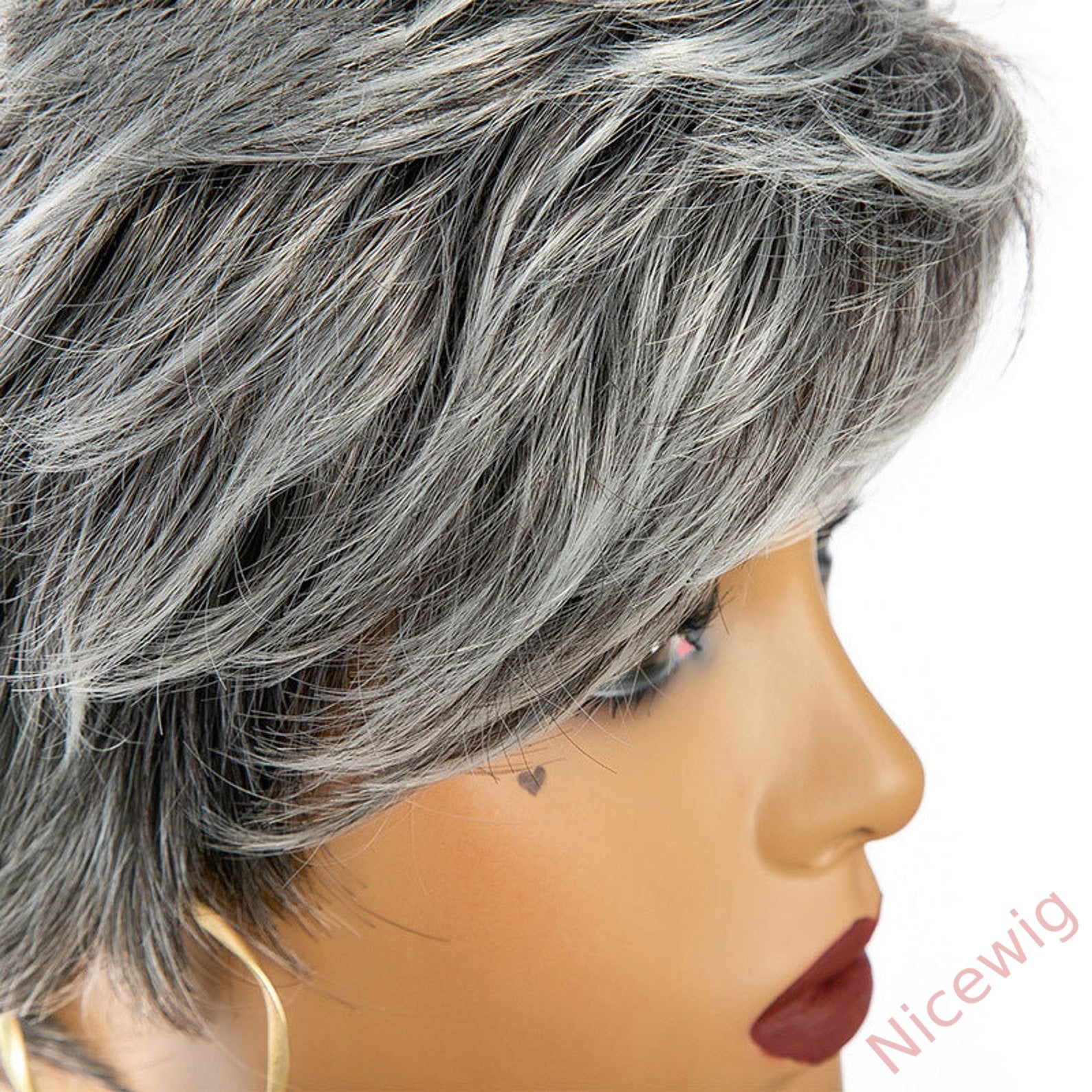 New Glueless Salt and Pepper Short Straight Bob Pixe Cut Wig