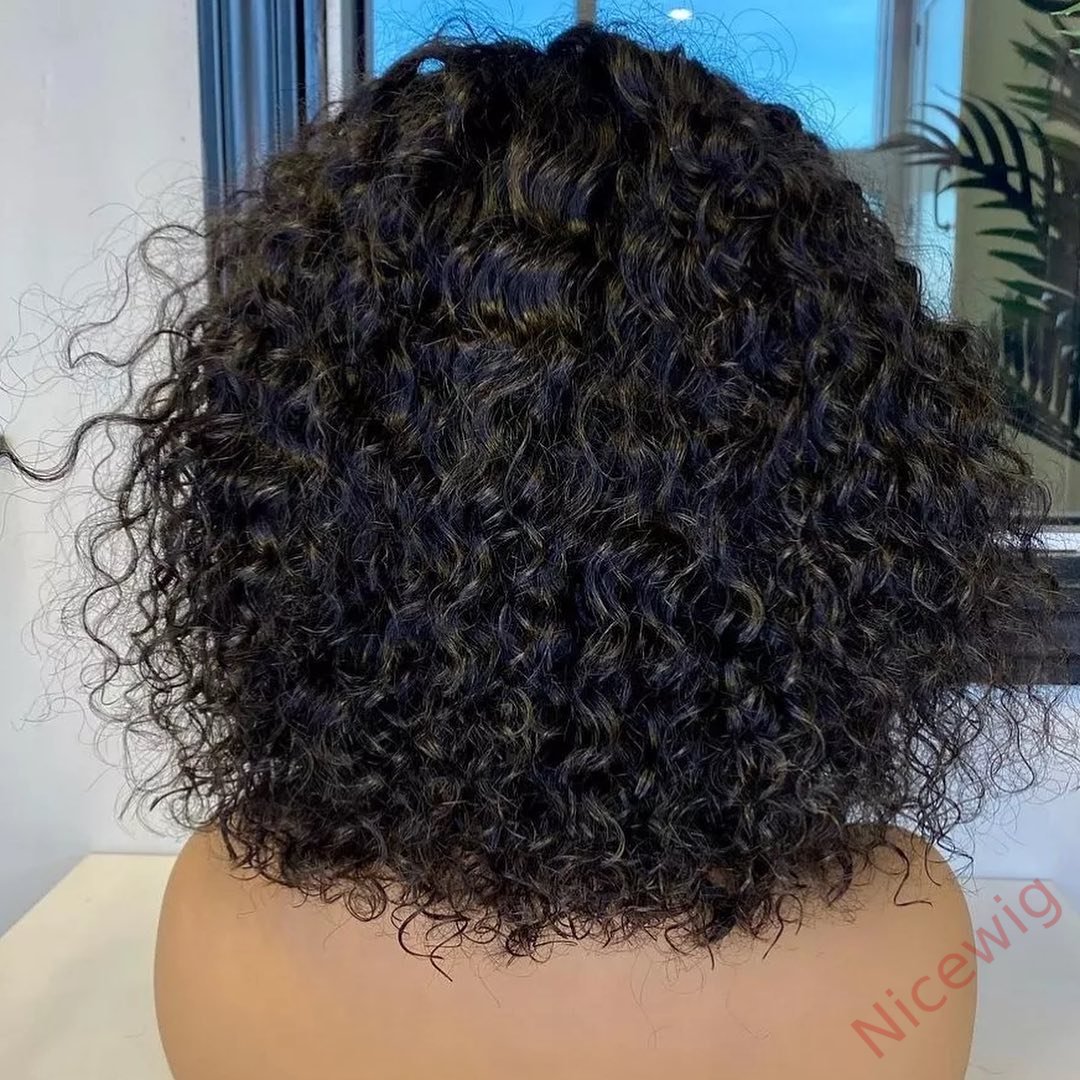 Black Brazilian Remy Curly Hair Bob Wig With Bangs Glueless Wigs