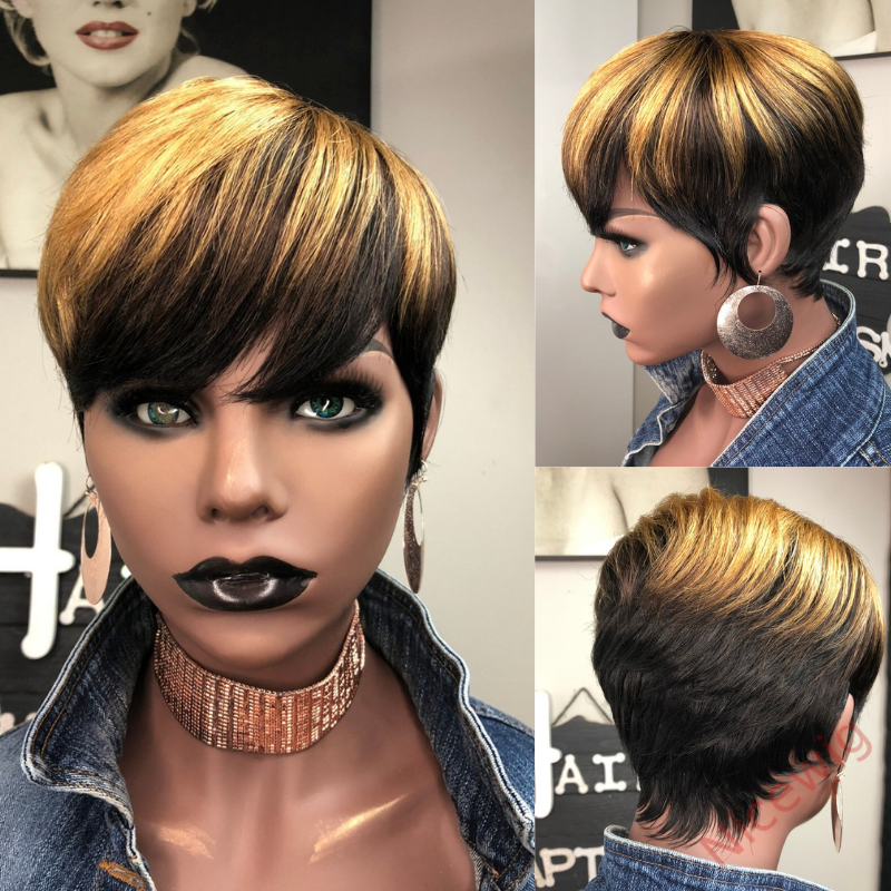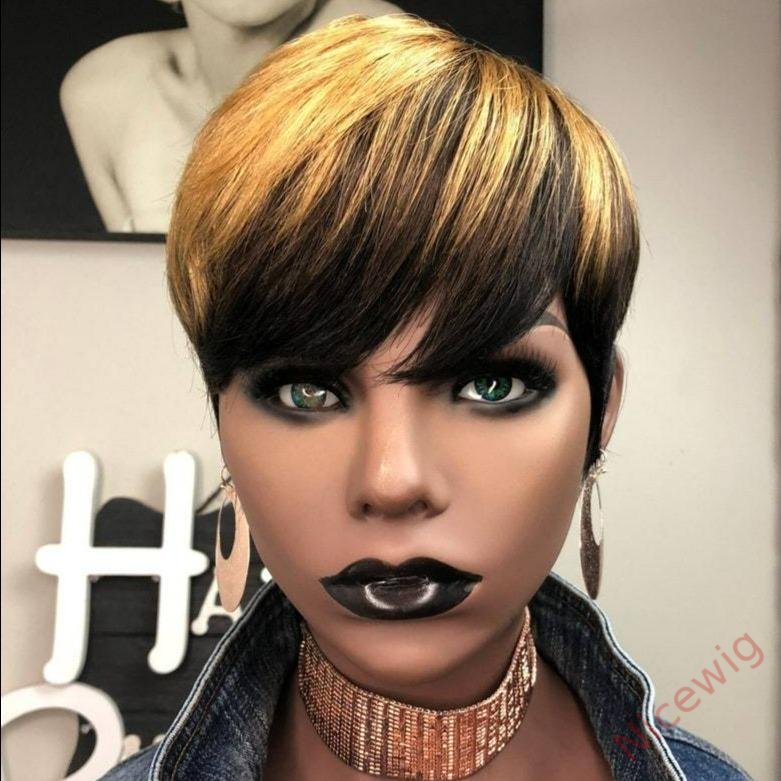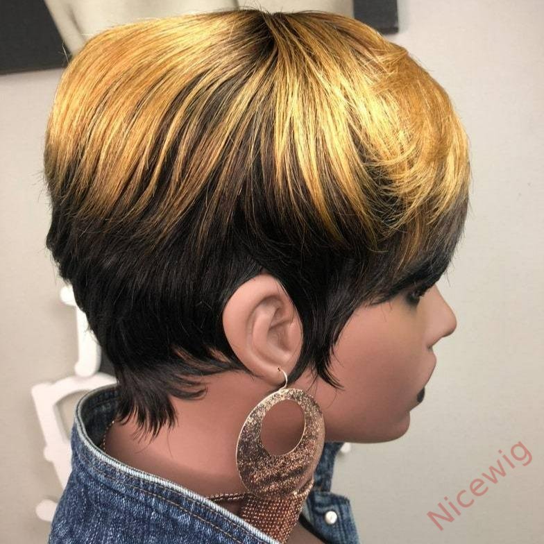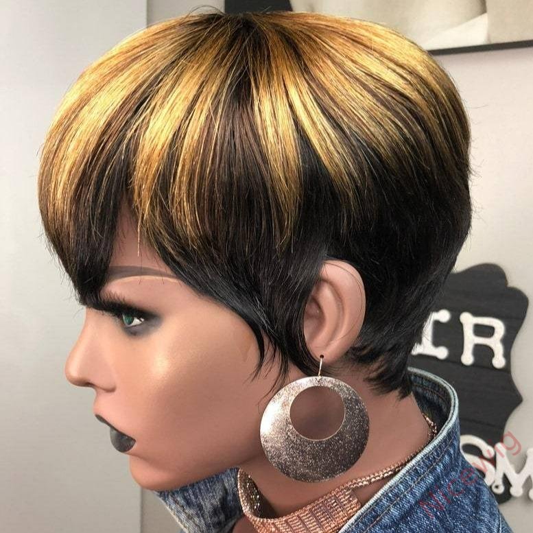 Black Gold Short Straight Bob Pixie Cut Hair Wig