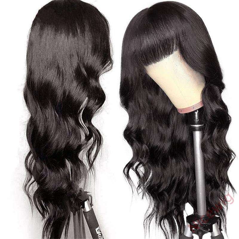 Black Long Hair Loose Deep Wave Wigs with Bangs for Black Women