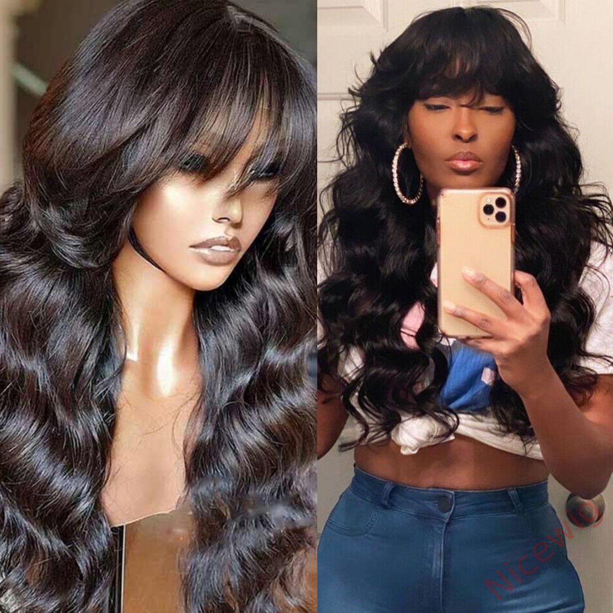 Brazilian Body Wave With Bangs Black Women Glueless Machine Made Remy Wigs