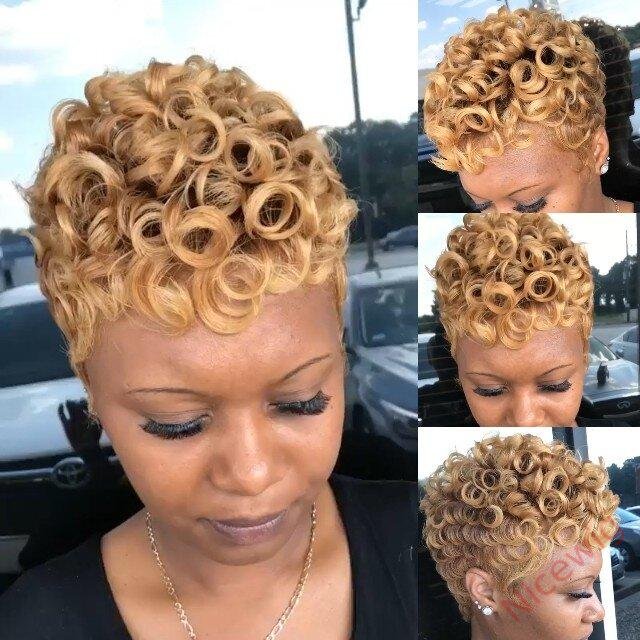 Blonde Short Wavy Curly Heat-Friendly Pixed Cut Wig