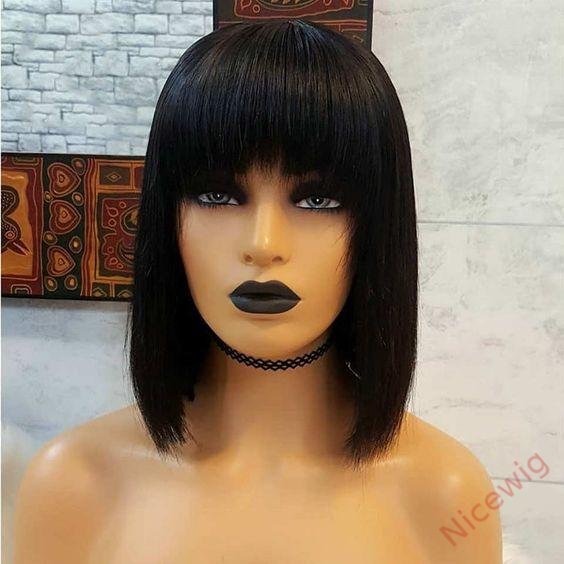 Colorful Brazilian Straight Hair Short BOB Wigs Lady Wig With Bangs