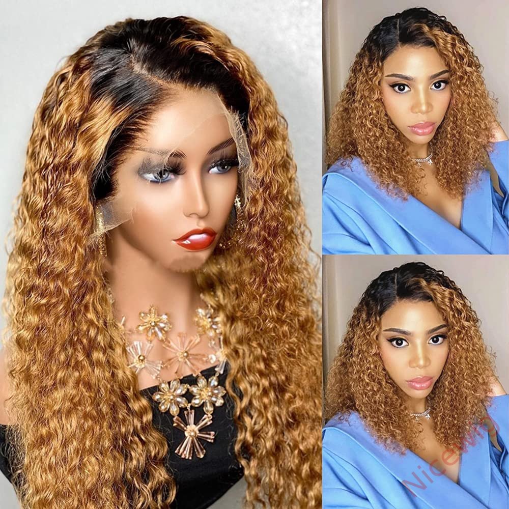 Black Gradient Light Brown Brazilian Water Wave Curly Wigs