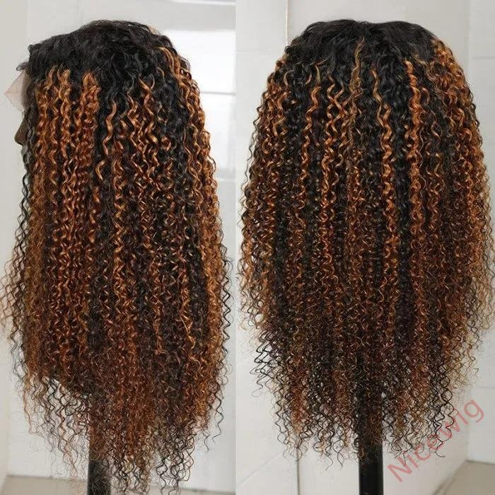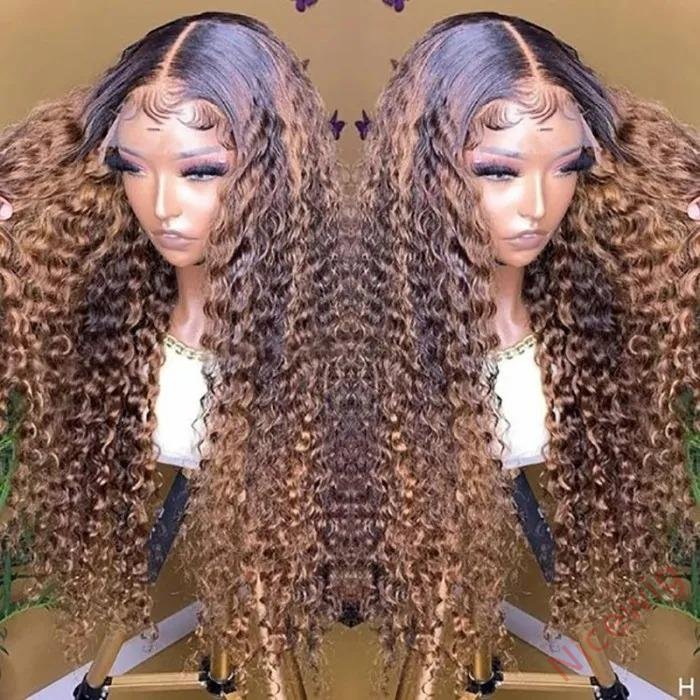 Brown Mixed Blonde Brazilian Water Wave Curly Wigs