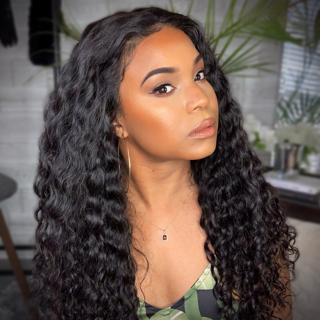 Black Brazilian Water Wave Long Curly Wigs