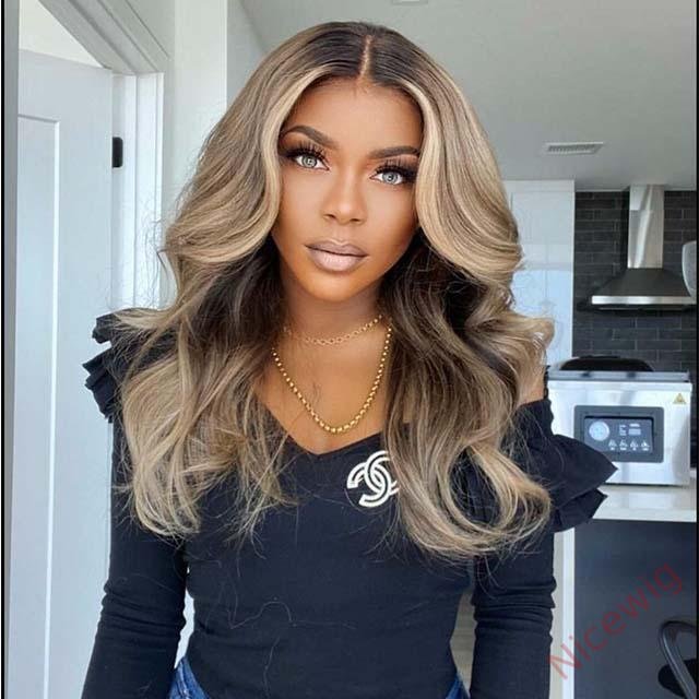 Brown Mixed Blonde Long Wigs Remy Wave Hair