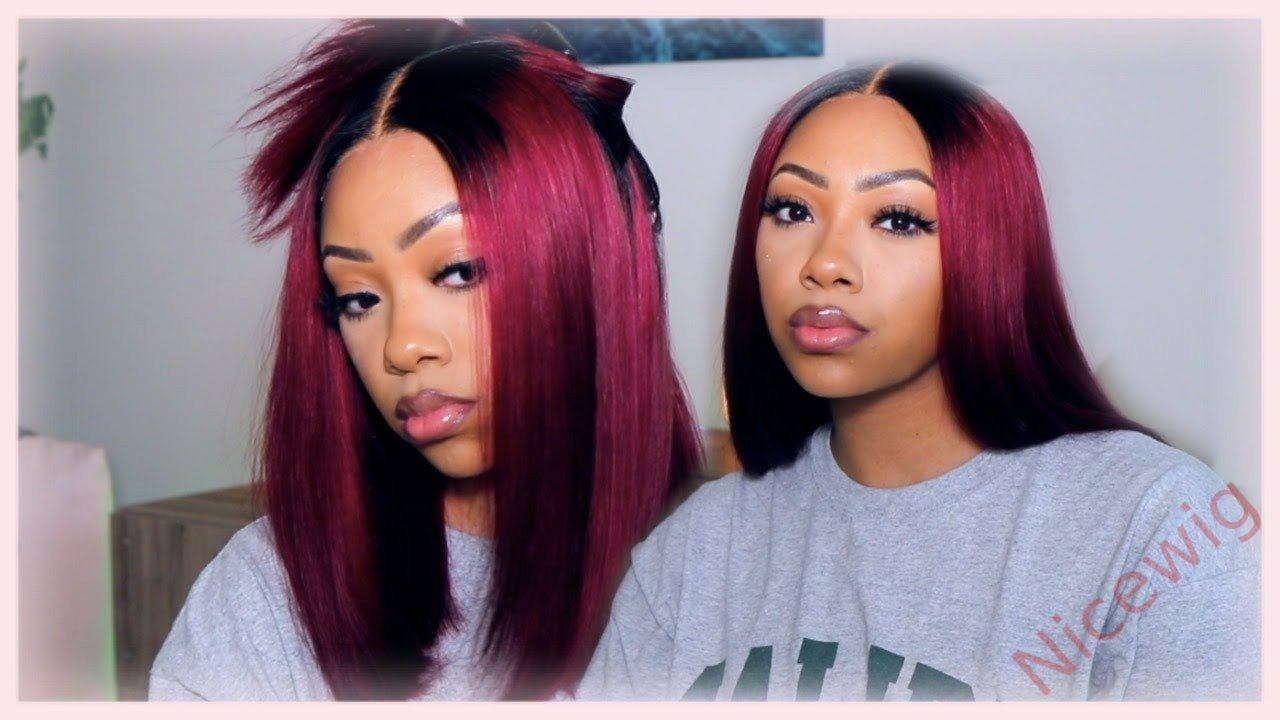 Burgundy Black Gradient Red Centre Parting Long Hair Straight Wig