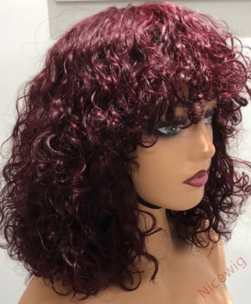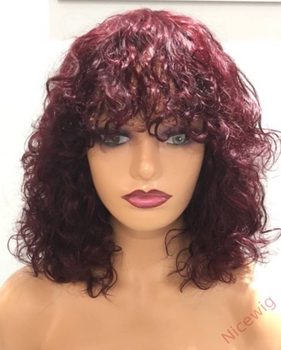 Glueless Brazilian Curly Hair Wig With Bangs Glueless Wig