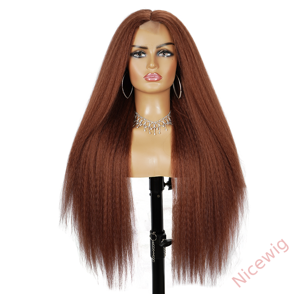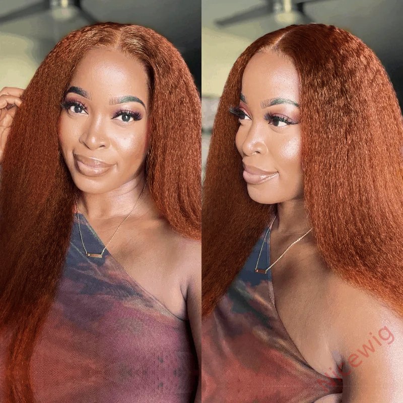 Glueless Brown Kinky straight 200% density brazilian wigs