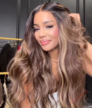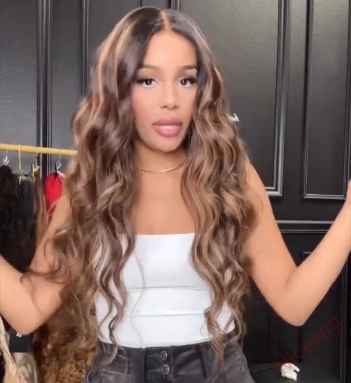 New Glueless Brown Mixed Blonde Highlights Loose Wave Long Wig