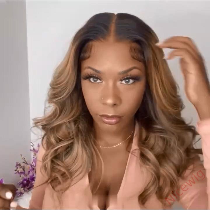 Glueless Brown Mixed Blonde Highlights Loose Wave Wig