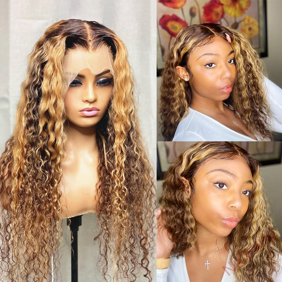 Glueless Hightlight Mixed Blonde Brazilian Long Hair Curly Wig