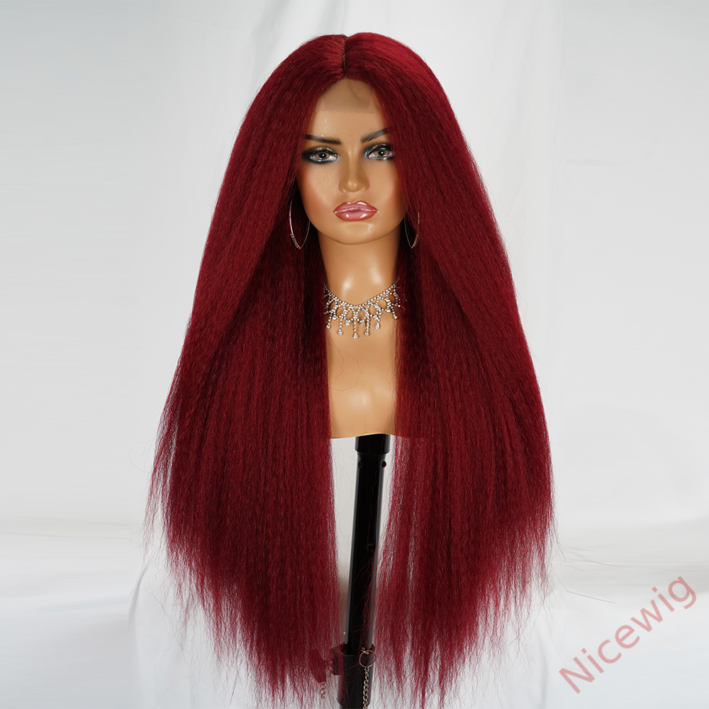 Glueless Wine Red Kinky straight 200% density brazilian Yaki Wig