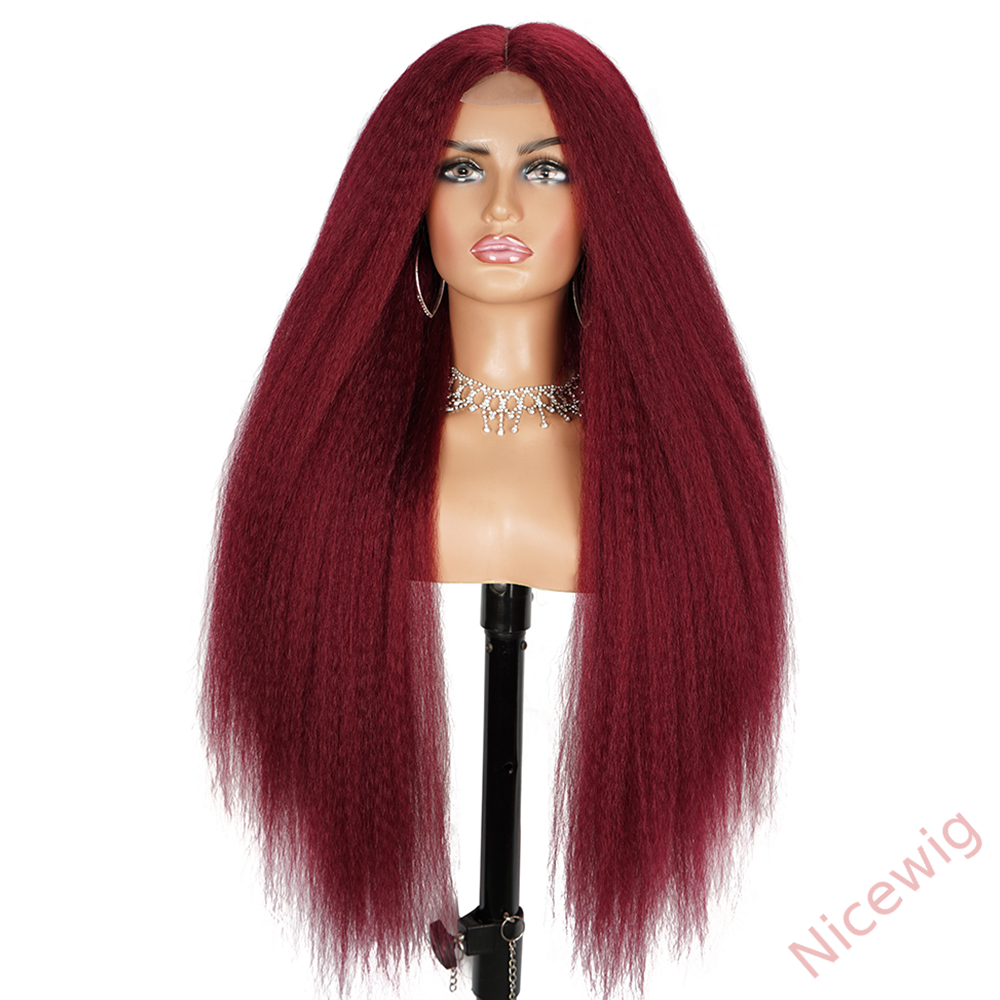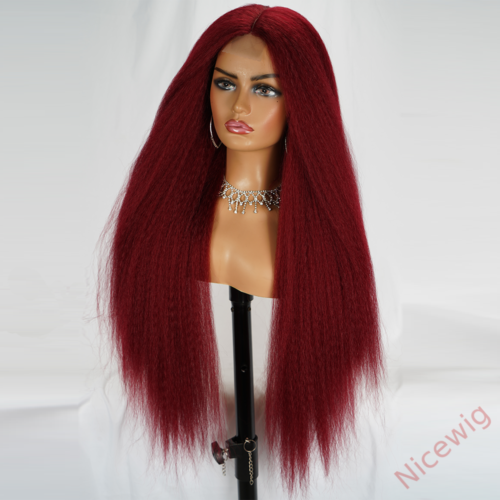 Glueless Wine Red Kinky straight 200% density glueless brazilian wigs