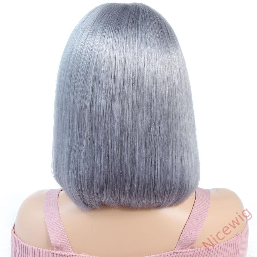 Gray Brazilian Short Straight Hair BOB Wigs Lady Wig