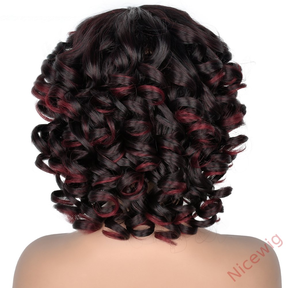 Kinky Curly Wigs With Bangs Fluffy African Ombre Glueless Wigs