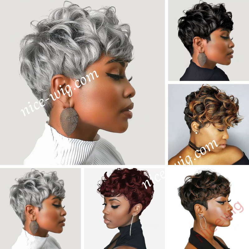 Glueless Best Design Cute Short Pixie Cut Wig With Bangs