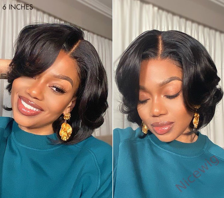 New Glueless Short Wavy Bob Hair Natural Black Wig