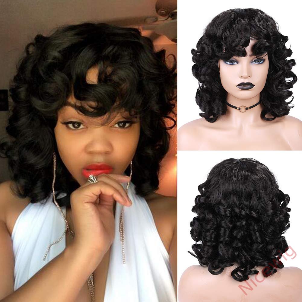 Short Hair Afro Kinky Curly Wigs With Bangs Fluffy African Ombre Glueless Wigs