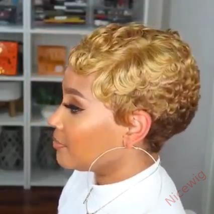 Short Wavy Curly Heat-Friendly Pixed Cut Wig