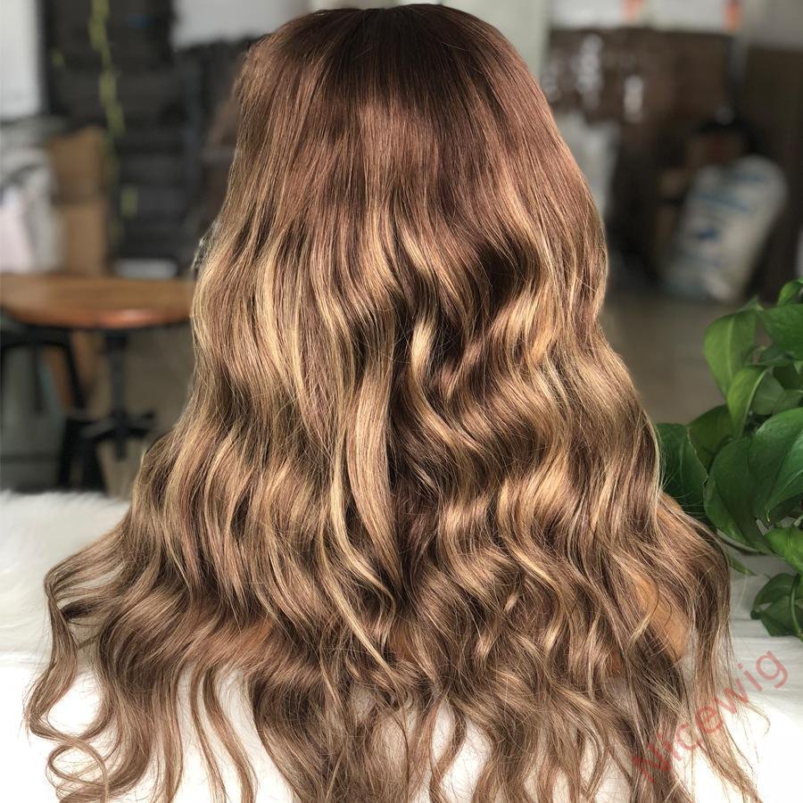 Brown Mixed Blonde Long Wigs Remy Wave Hair