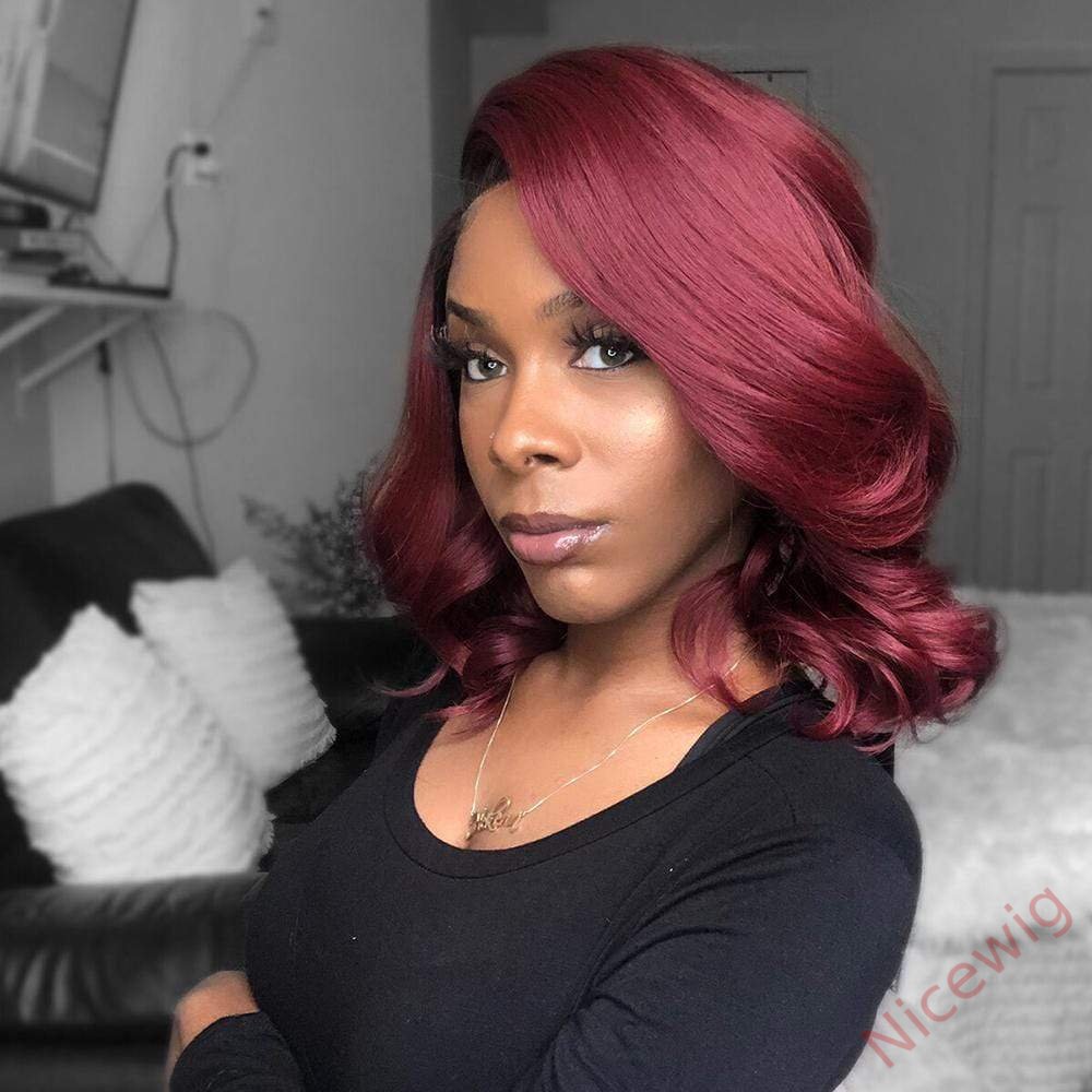 Wine Red/Blonde Short Bob Body Wave Wig For Women